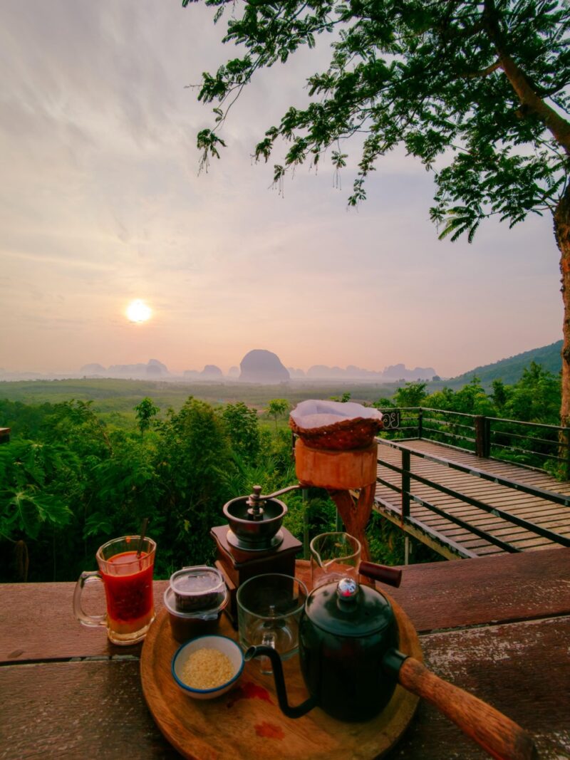 - พระอาทิตย์ขึ้น ดินแดงดอย เห็นวิวป่าเขาหินปูนเมืองกระบี่ ค่ารถขึ้นดอย คนละ 50 บาท มาได้ตั้งแต่ 05.30 น. เอารถจอดไว้ แล้วนั่งรถกระบะขึ้นไป ไม่เกิน 10 นาที หรือใครจะเดินขึ้น-ลง เองก็ได้ ด้านบนมีคาเฟ่ ชา กาแฟ อาหารเช้าง่ายๆ ตอนลงสามารถแจ้งที่คาเฟ่ได้เลย เค้าจะเรียกรถมารับ วิวพระอาทิตย์ขึ้นสวยมากๆ ดริปกาแฟ จิบชาไปด้วย ดีมากๆ
