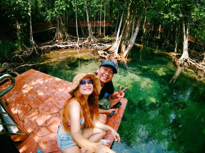 - ท่าปอมคลองสองน้ำ คลองน้ำใสอีกแห่งของกระบี่ มีทางเดินชมป่าโกงกาง และคลองน้ำใส สะดวกกับผู้ใช้รถเข็นเพราะเป็นทางปูนไปตลอดเส้นทาง มีจุดให้ลงเล่นน้ำ ไม่สามารถลงได้ทุกจุด สามารถพายเรือคายัคเที่ยวได้ ค่าเช่าลำละ 350 บาท เปิด : 8.30 – 16.30 น.