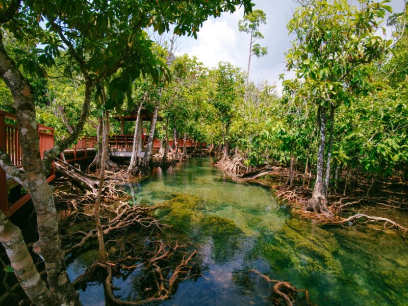 ร้านเปิด : 6:30–14:00 - เดินเล่นชมป่าโกงกาง เขาขนาบน้ำ หรือใครจะนั่่งเรือชมอุโมงค์ป่าโกงกางก็ได้ค่ะ