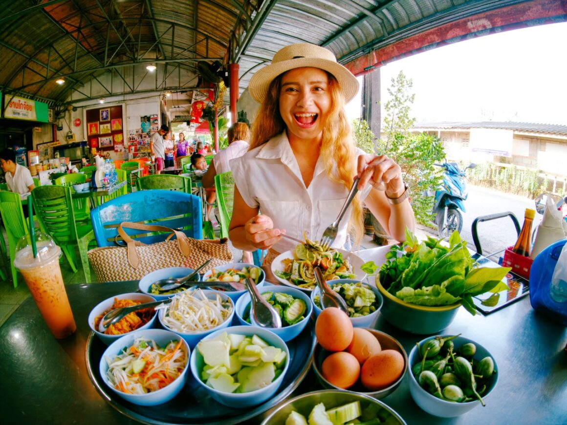 อาหารเช้า ขนมจีนโกจ้อย เป็นร้านอาหารท้องถิ่นที่แวะเกือบทุกครั้ง ไม่ขาไป ก็ขากลับ เพราะอยู่ใกล้สนามบิน และอร่อยด้วย จะสั่งขนมจีนราดน้ำยาต่างๆ เป็นจาน หรือสั่งเป็นชุด มาครบทุกน้ำยาก็ยังได้ มีทั้งน้ำยากะทิ น้ำพริก น้ำยาป่า และที่แนะนำสุดๆ คือแกงไตปลา ถึงจะเผ็ด แต่ขอบอกเลยว่าหรอยแรง กินกับไก่ทอด หรือห่อหมก และผักสารพัดชนิดที่เสริร์ฟแบบจัดเต็มสำหรับทุกโต๊ะ ไก่ทอดสามารถเดินไปคีบใส่จานมาที่โต๊ะได้เลย